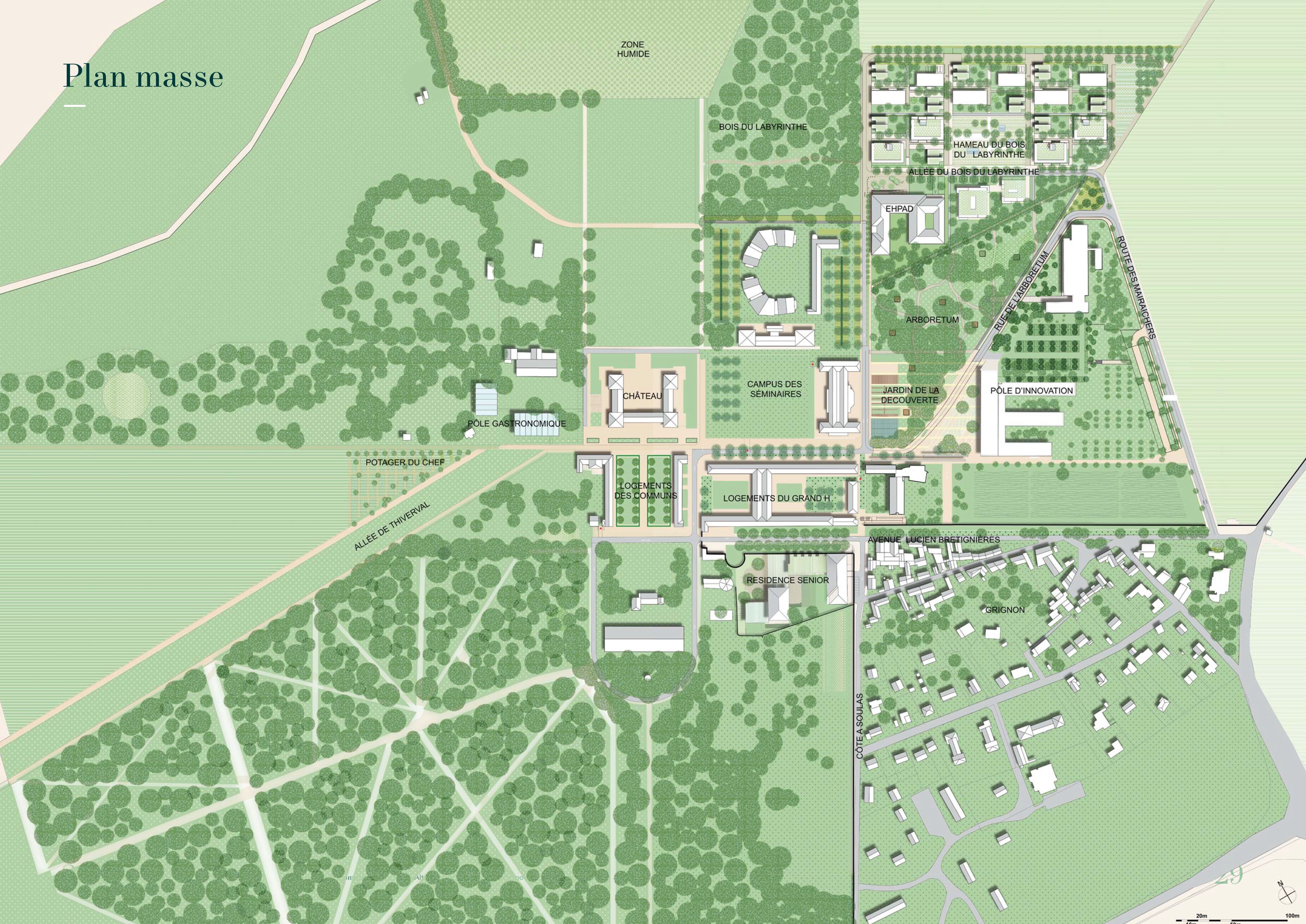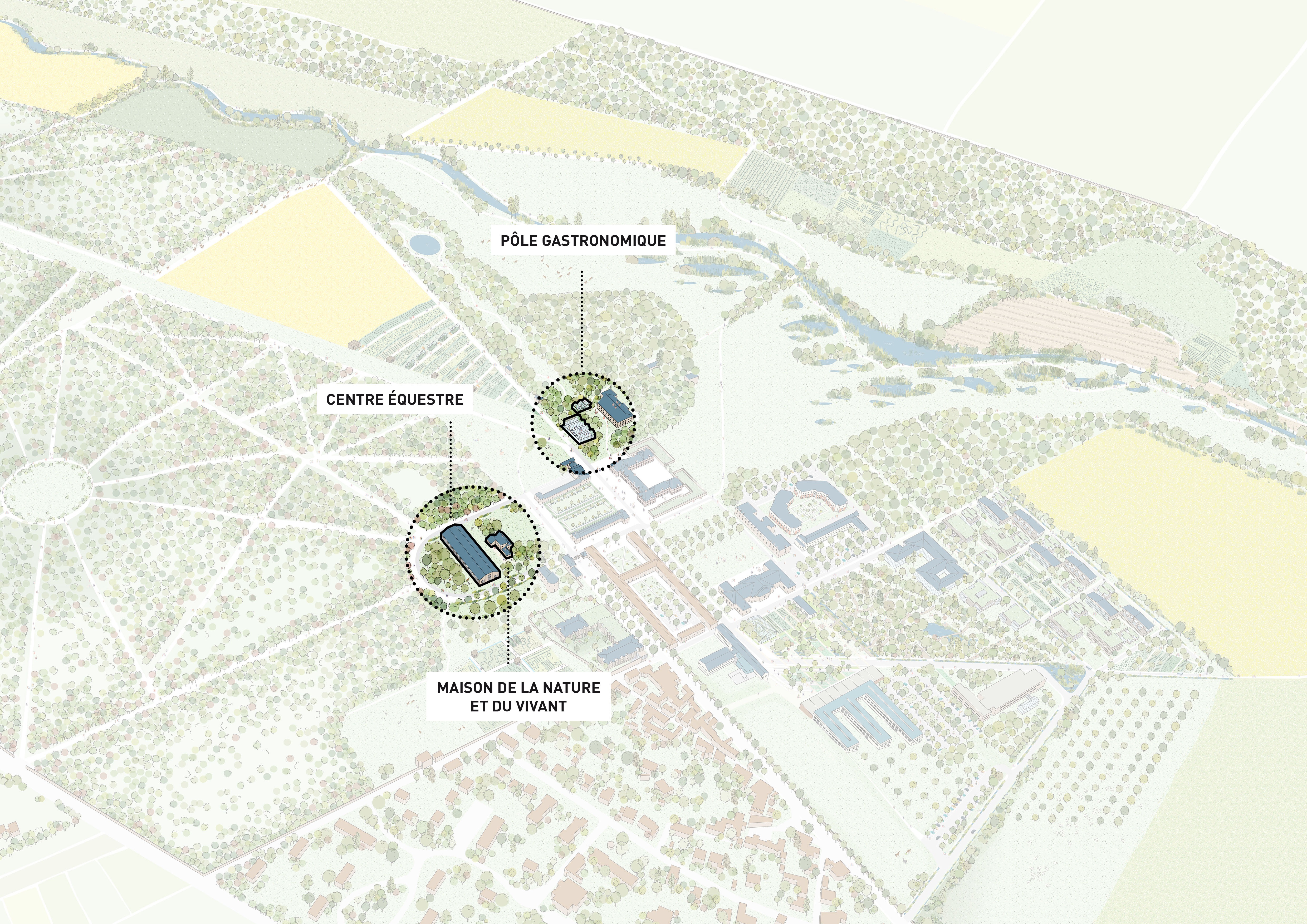 Le domaine de Grignon, site historique de l'École d'Agriculture, est un symbole de recherche agronomique depuis 1827. Le projet actuel s'inscrit dans ce riche héritage, avec l'objectif de préserver et valoriser ce lieu à la suite du déménagement de l'école vers le campus de Saclay. Trois bâtiments récents de laboratoires, à l'est du domaine, représentent l'infrastructure de base à transformer.