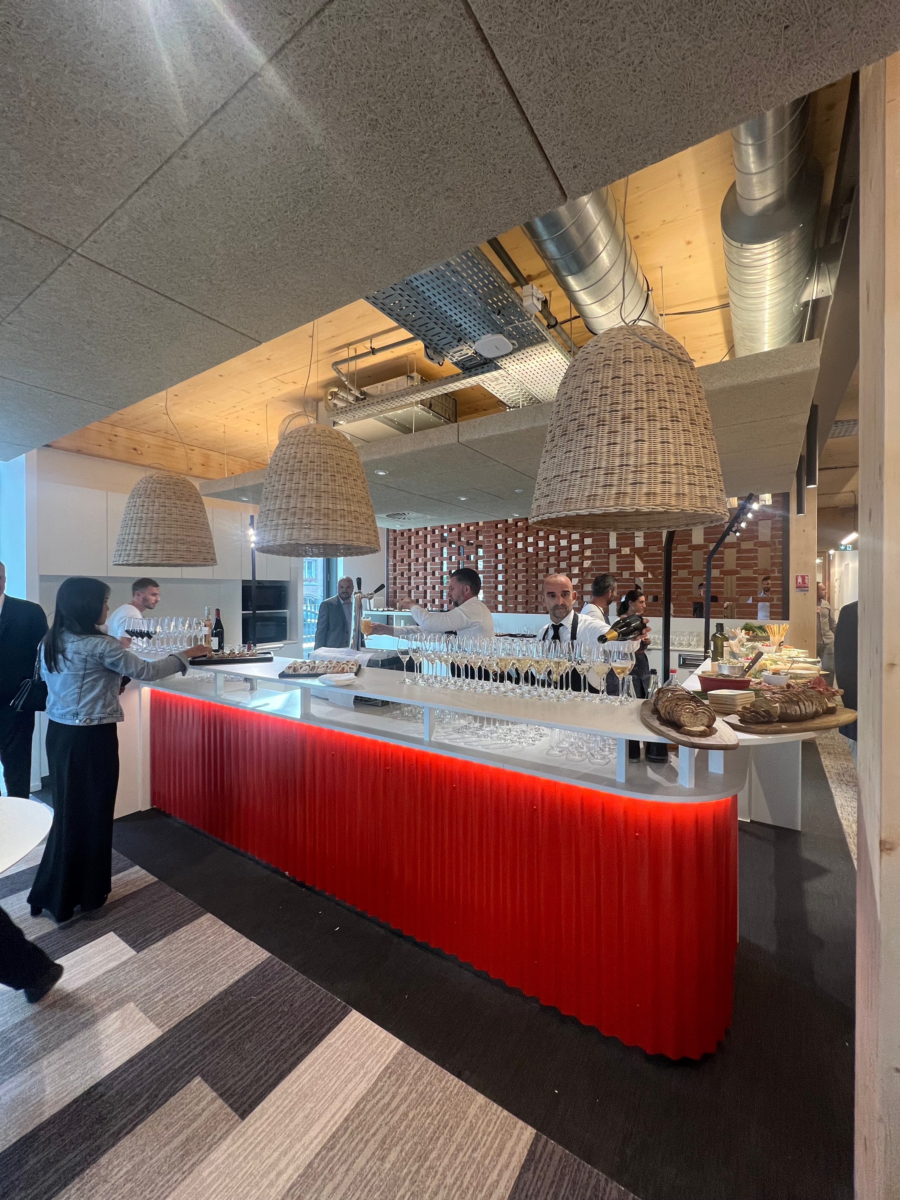 Grace au système de calepinage des éléments techniques, l’ensemble des dalles sont laissées apparentes en sous-face. Grace à un système d’éclairage indirect, ces sous-faces sont mises en valeur pour donner un côté industriel dans la partie béton, et chaleureux dans la partie bois.