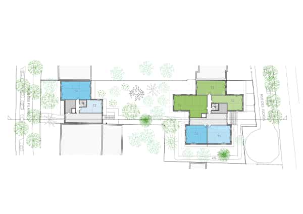 Localisé à la frontière entre Sceaux et Bourg-la-Reine, le site tout en longueur s’étend de la rue des Jockos jusqu’à la rue des Filmins. Il est très arboré, et de belles constructions constituent le voisinage. L’ambition du projet est de sanctuarisé le cœur d’ilot très dense et végétalisé, et d’assurer un retrait sur rue permettant de conserver les arbres existants et d’en disposer de nouveaux. Le bâtiment s’intègre ainsi dans un écrin de verdure.