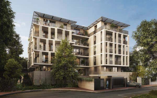 Par devant ces façades se déroulent les espaces extérieurs. Véritables continuitées entre le dedans et le dehors, ces jardins suspendus sont travaillés selon des formes incurvées, assurant une proximité maximale entre les bâtiments et la végétation. Les balcons s’élargissent lorsque cela est possible, et se réduisent pour laisser la place aux grands sujets plantés. Toute en harmonie, les façades incurvées apportent une douceur à l’ensemble.