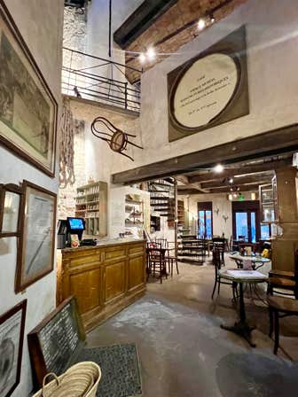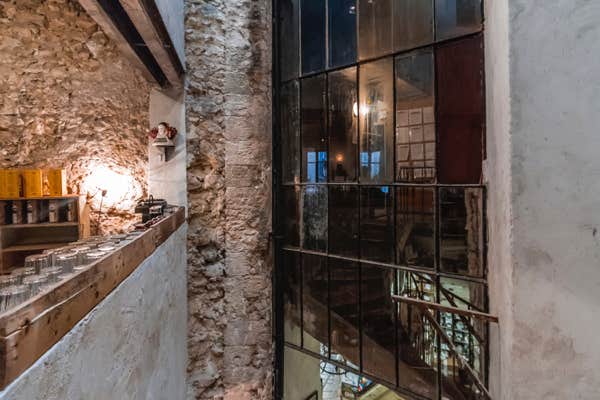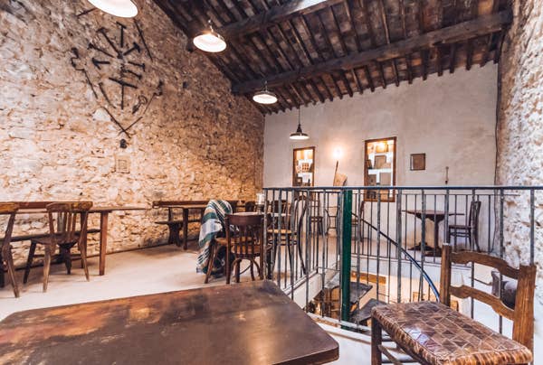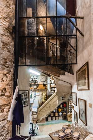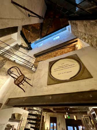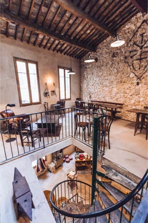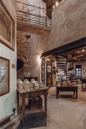 La sensibilité de la gérante fait partie de l’histoire de ce lieu. Tout élément ancien mérite d’être mis en lumière ici. Dès que c’est possible, les murs anciens sont décroutés afin de rendre apparentes les vieilles pierres qui les constituent. Les étagères sont toutes réalisées en bois brut, qui malgré leur aspect ancien ont été réalisées par des équipes de menuisiers.