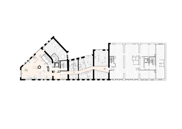 Le projet se développe sur plusieurs bâtiments, reliés entre eux par des ouvertures à chaque niveaux.