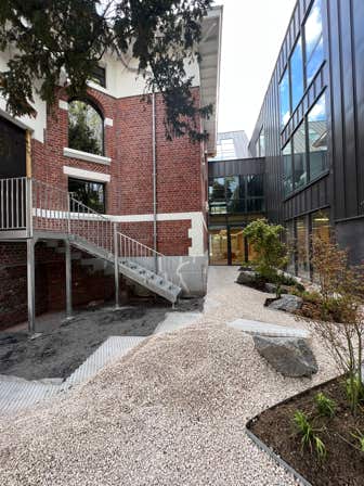 Dans le projet initial, il était prévu que cette maison soit démolie, pour être reconstruite avec une volumétrie identique. Le premier défi a donc été de sécuriser ce bâtiment, afin de travailler avec et de ne pas le démolir. Ses qualités patrimoniales et spatiales étant significatives, nous avons donc mis en valeur ce bâtiment en l’intégrant à la conception générale.
