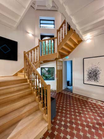 A l‘intérieur de la maison, le volumes de la pièce centrale est assez exceptionnel. Dans la triple hauteur prend place un escalier de circulation qui distribue l’ensemble des pièces. Il n’aurait pas été possible de créer un tel espace pour du bureau avec un projet neuf, notamment pour des règles d’accessibilité ou d’incendie. La réhabilitation a permis de travailler en dérogation, et de proposer un espace de bureau unique.