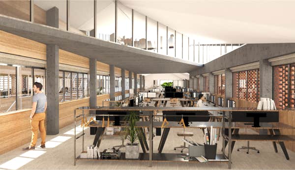 Les espaces de production se déploient sur trois niveaux, surmontés d’une toiture terrasse. Un système de portiques en béton supporte l’ensemble, avec des planchers en prédalles de bois debout, renforcés par une chape de compression, couvrant des portées de 8 mètres. Les façades extérieures sont protégées par des brise-soleil en terre cuite, fixés dans des cadres en acier formant une façade rideau. À l’intérieur, des rideaux permettent de moduler la lumière naturelle, tout en protégeant les artistes-concepteurs 3D.