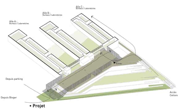 Le projet vise à réhabiliter ces laboratoires existants pour accueillir des acteurs des filières agricoles et environnementales, dans une démarche collaborative et innovante. L'accent est mis sur la création d'un écosystème dynamique, où unités de recherche, start-ups et entreprises privées peuvent interagir et innover ensemble, tout en respectant les contraintes et qualités du site.
