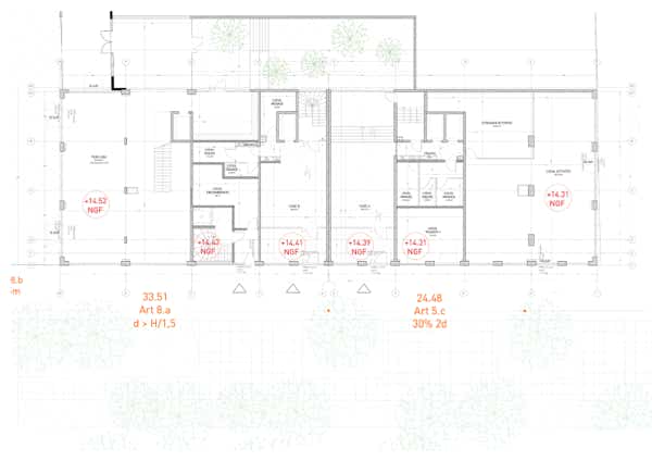 Au rez-de-chaussée, les halls d’accès sont traversants, permettant d’offrir une transparence depuis la rue jusqu’au cœur d’ilot végétalisé.
