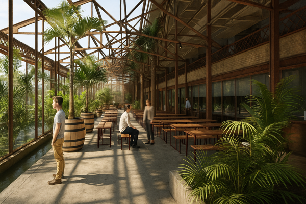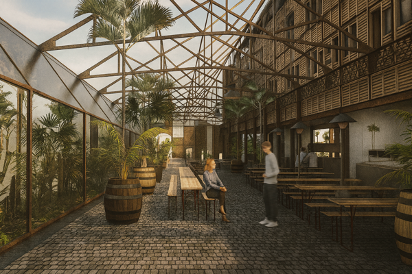 La préservation du patrimoine industriel ne se limite pas aux bâtiments exceptionnels, mais s’étend à la mémoire collective des générations de travailleurs qui ont animé ces lieux. Sur ce site, la compagnie des chemins de fer Paris Orléans exploitait au début du XXème siècle des hangars soigneusement construits, avec des assemblages fins et des matériaux de qualité. Les fermes de la charpente, en bon état de conservation, seront restaurées et réutilisées pour soutenir la toiture en verre du jardin intérieur, magnifiant cet espace, notamment dans la cafétéria.